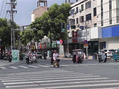 整改后,蝶园岗电动自行车驾驶人员依规佩戴头盔,按交规有序行驶