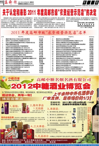 关于认定和表彰2011年度高邮市级“农资经营示范店”的决定