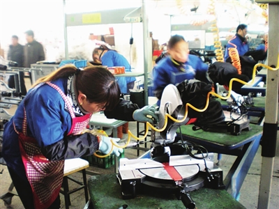 面对复杂多变的国际市场形势,江苏金飞达公司积极应对挑战,做大规模、做强实力、做优品牌、做特产品,拉长了电动工具产业链。2011年,公司实现产值9.1亿元,利税3000多万元,今年将向10亿目标迈进。图为公司员工正在组装电动工具。
