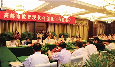 经过4年的不解努力,我市所有乡镇于2009年底通过了扬州市乡镇教育现代化验收。在创建乡镇教育现代化的同时,全力推进区域教育现代化建设。2011年5月9日至12日,省教育现代化建设水平评估组在省教育厅副厅长倪道潜的带领下,对我市区域教育现代化建设工作进行了现场考察评估验收。9月6日,省专家组再次来邮进行了复评。