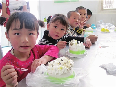 5月31日上午,来自我市“交广网”爱心车队的11名爱心司机来到市特殊教育学校,为孩子们送上节日蛋糕和节日祝福。据车队刘队长介绍,爱心车队自成立以来,每年都会在儿童节之际为特校的孩子们送上一份节日关怀。图为孩子们开心地吃蛋糕。 姚静 摄