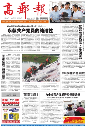 高邮报 一版要闻 01 2012-06-121 2012年06月12日 星期二