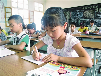 课堂上,她一边抬头看着黑板上老师的粉笔字,一边一笔一划工工整整地在田字格本子上临摹。“书法班是爷爷帮我报的名,爷爷说,女孩子要把字练好。”郑靓熙害羞地告诉记者,如果不参加兴趣班,她的暑期生活将徘徊在“看电视与写作业”之间。