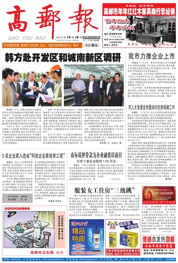 高邮报 一版要闻 01 2012-10-181 2012年10月18日 星期四