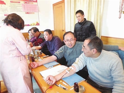 10日上午,马棚镇组织部门、企事业单位干部职工在镇卫生院参加无偿献血活动。当天共有56名干部职工参加献血,献血量16900毫升。图为献血现场。朱传祥 周麟 摄