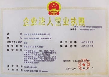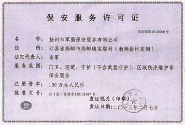 扬州市信和物业服务有限公司是扬州市军鹰保安服务有限公司总经理李军此前创办的一家企业,信和物业长期的成功运作,为军鹰保安提供更加有力的人才、技术支撑。