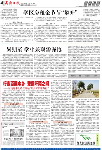日前,记者在高邮镇工业园区看到,部分企业开始招聘暑期兼职人员,并将暑期工作人员定位为高校学生。“我们招聘暑假工,主要想解决现阶段人手短缺的问题。”某机械制造有限公司的主管张先生告诉记者,“有没有工作经验无所谓,关键要勤快,懂得沟通,企业老板喜欢‘嘴甜腿勤’的学生”。据张先生介绍,由于公司的产品都是远销俄罗斯,现急缺俄语销售,凡是通过该公司应聘的学生,不仅基本工资有保障,每销售一台产品也会有不少的提成。“我们都会与应聘者签订合同,虽然是短工,但我们会保护他们的合法权益,这样既让他们能放心、用心地工作,出现用工问题时我们也能根据合同行事。”