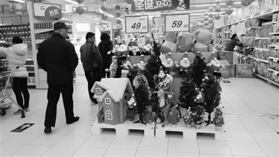 11日,记者在市区部分大型超市看到,超市已经在最显眼的地方布置出了圣诞商品专区。“我开了一家食品店,圣诞节快到了,过来选一些装饰品和圣诞节当天派送的小礼物。”正在一家商场货架前挑选圣诞商品的王女士说,“每年我都会在店里布置一些圣诞饰品,比如在店门口摆圣诞树,在橱窗玻璃上贴雪花、‘圣诞老人’等来吸引顾客。”