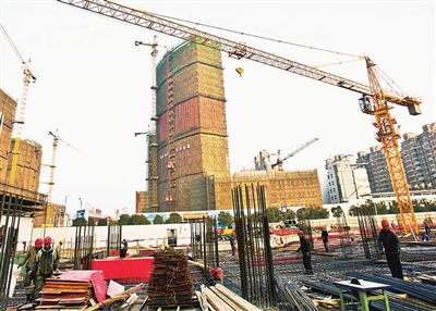 图为正在建设中的世贸广场一角。 王林山/摄