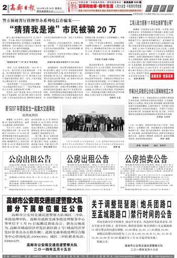 高邮报 综合新闻 02 2014-05-161 2014年05月16日 星期五