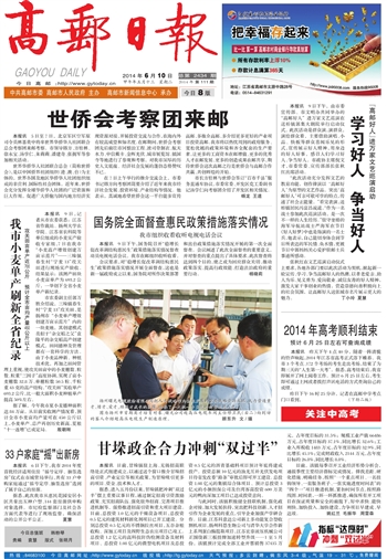 高邮报 一版要闻 01 2014-06-101 2014年06月10日 星期二