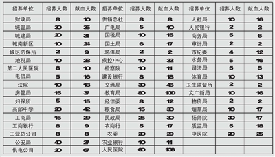 2013年高邮市城区各单位参与无偿献血活动统计