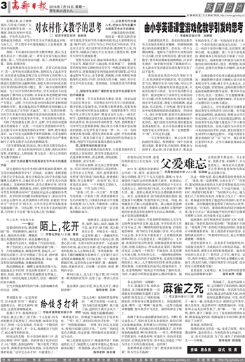 在新课程改革后,我们的英语教学形式更加活泼和富有趣味,但细细回顾我们的英语课堂教学,仍存在一些不合理的现象:老师为了培养学生对英语的学习兴趣,经常会利用游戏,进行游戏化教学,整节英语课都是闹哄哄的,许多学生就在一知半解中结束了新课的学习。本人就小学英语课堂游戏化教学引发了以下思考: