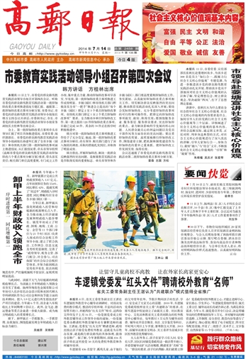 高邮报 一版要闻 01 2014-07-141 2014年07月14日 星期一