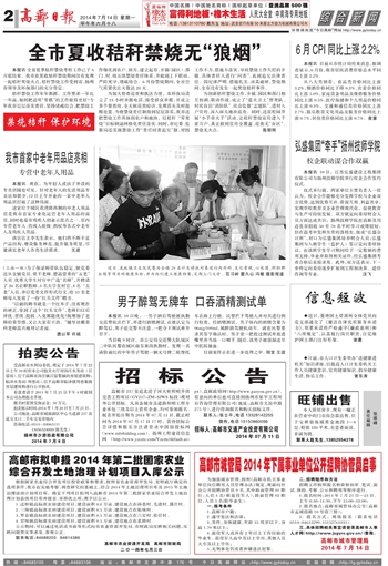 高邮报 综合新闻 02 2014-07-141 2014年07月14日 星期一