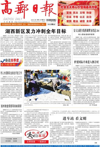 高邮报 一版要闻 01 2014-11-141 2014年11月14日 星期五