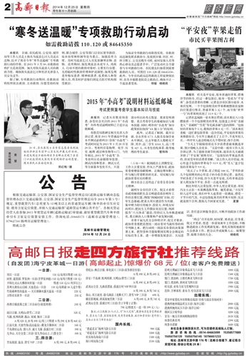 高邮报 综合新闻 02 2014-12-251 2014年12月25日 星期四