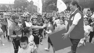 近日,市红马甲志愿者协会、阳光志愿者协会、自行车运动协会、扬州广陵区自行车运动协会、扬州旋风哥爱心联络站、扬州呱呱叫爱心团队、江苏隆承爱心1+1志愿者协会在我市净土寺塔广场联合举行为“高邮好人”顾为俊捐款活动,将募集到的共计55000余元悉数交到了顾为俊爱人手中。图为捐款现场。