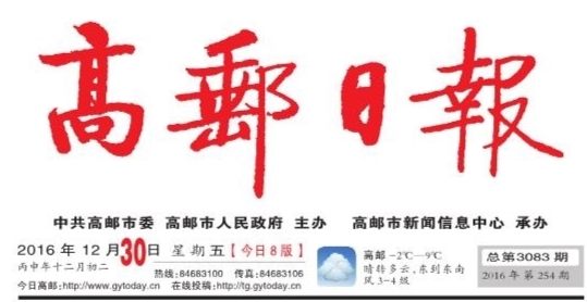 2016年12月30日 星期五 丙申年十二月初二 总第3083期 2016年第254期 今日8版
