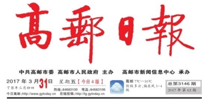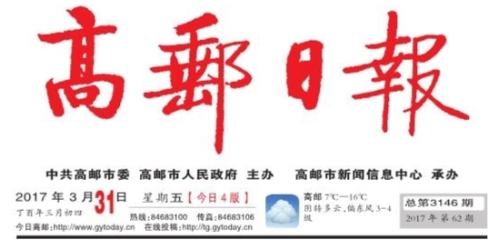 2017年3月31日 丁酉年三月初四 星期五 总第3146期 2017年第62期 今日4版