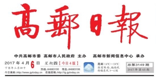 2017年4月6日 丁酉年三月初十 星期四 总第3149期 2017年第65期 今日4版