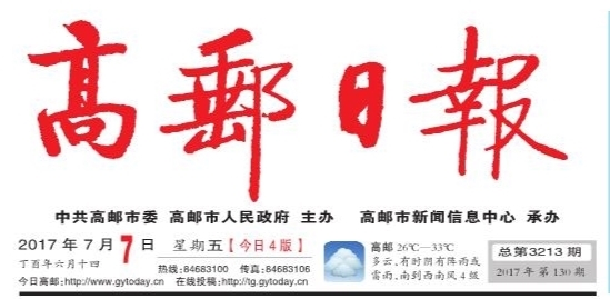 2017年7月7日 丁酉年六月十四 星期五 总第3213期 2017年第130期 今日4版