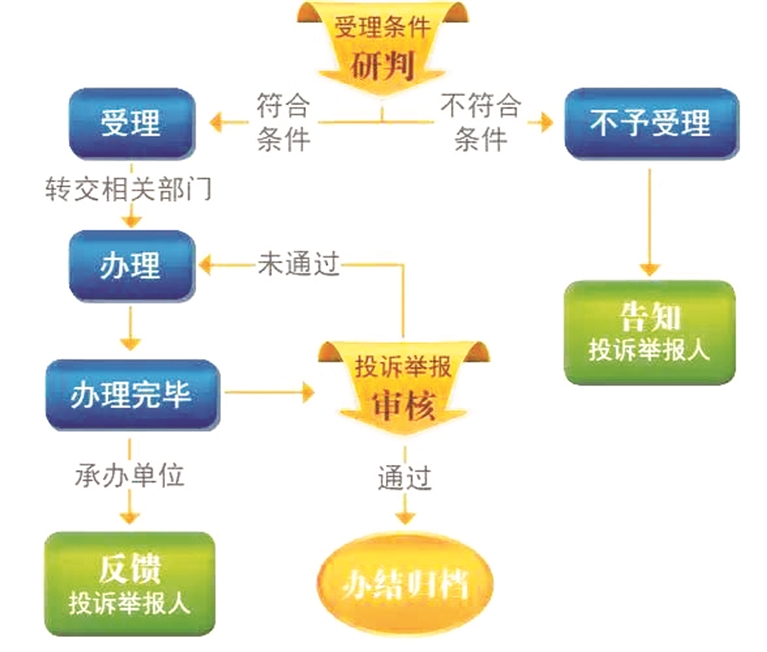 三是认真处理,反馈到位。属于职责范围内的投诉举报,第一时间内及时受理、调查核实、依法处理,并在规定的时间内将结果反馈于投诉举报人。不属于职责范围的投诉举报,耐心地向投诉举报人解释,并告知投诉举报人向有管辖权的部门投诉举报。
