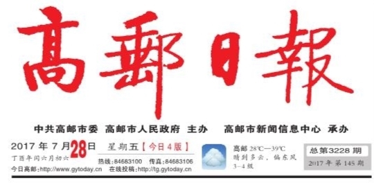 2017年7月28日 丁酉年闰六月初六 星期五 总第3228期 2017年第145期 今日4版