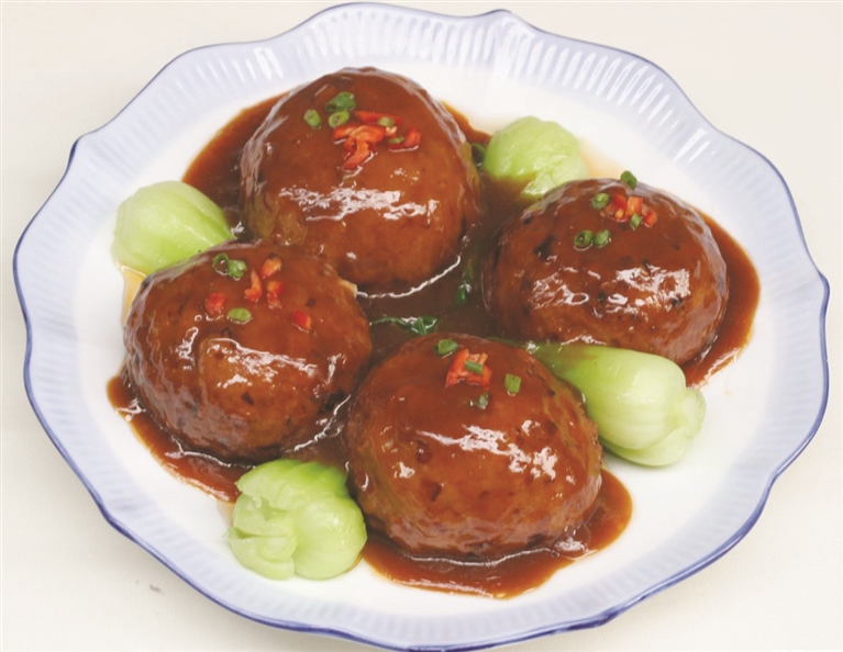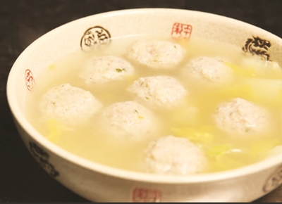 3、将事先切好的肉放入相应的佐料,做成拳头大小的肉圆,然后放入锅中。肉慢慢的由红变白,香气也慢慢的溢开。文火慢炖30分钟,一道极具“汪曾祺饮食观”的白汤狮子头就可以出锅了。