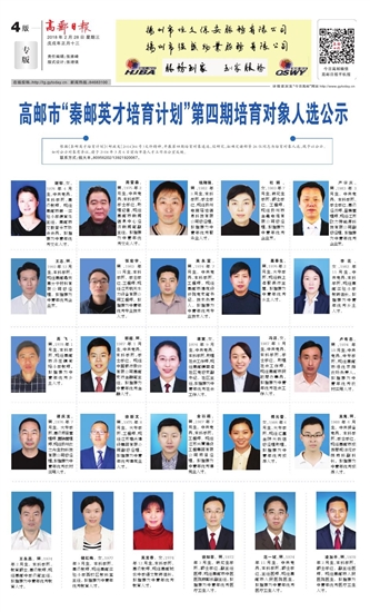 高邮市“秦邮英才培育计划”第四期培育对象人选公示