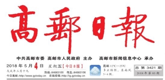 2018年5月4日 戊戌年三月十九 星期五 总第3421期 2018年第85期 今日8版