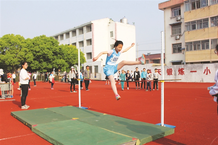 日前,卸甲镇2018年中小学生阳光体育运动会在卸甲初中举行。来自该镇7所中小学校的200多名运动员参加了跑步、跳高、跳远、垒球等项目比赛。图为运动会现场。