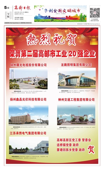 热烈祝贺荣膺第二届高邮市工业20强企业