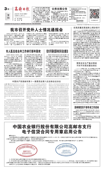 为向您提供更加安全便捷的金融服务,根据相关法律法规和监管规定,我行于2020年1月10日起正式启用“电子信贷合同专用章”并打印于我行签署的信贷业务相关的合同协议及其他相关法律文件上。现将有关事项通告如下: