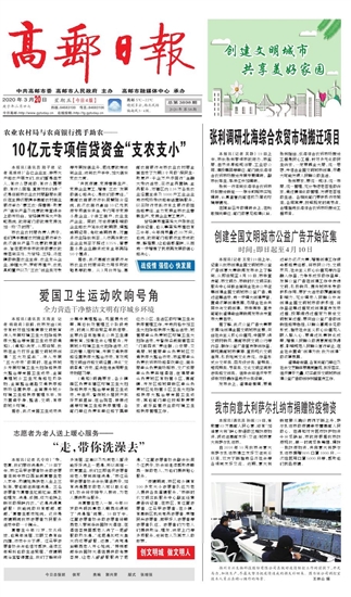 高邮报 一版要闻 01 2020-03-201 2020年03月20日 星期五