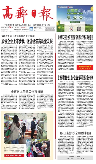 高邮报 一版要闻 01 2020-04-241 2020年04月24日 星期五