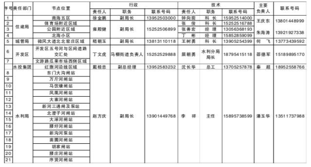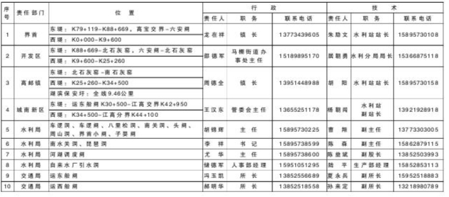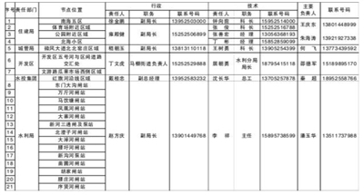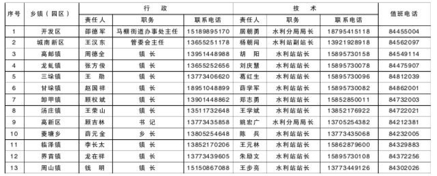 为切实做好防汛防旱工作,确保安全度汛,依据《中华人民共和国防洪法》的规定,防汛工作实行地方行政首长负责制为中心的各项责任制。现将我市乡镇(园区)、城区、京杭运河、水库防汛责任人予以公告。