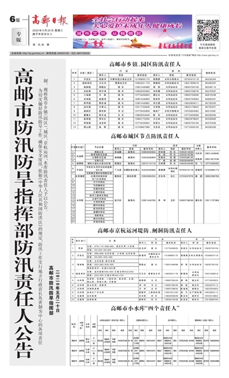 高邮市防汛防旱指挥部防汛责任人公告