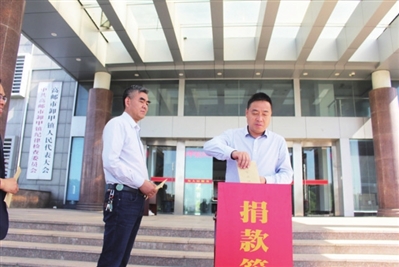 在5月19日卸甲镇举行的募捐仪式上,该镇党政班子成员、新挂牌成立的“一室八局”工作人员纷纷奉献爱心。镇党委书记夏瑞林在外出差,委托他人捐款1000元,镇长顾权斌捐款1000元,镇综合行政执法局22 名干部职工累计捐款5500元……不到一天时间,卸甲镇社会各界共募集“慈善一日捐”爱心善款10.8万元。