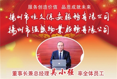 一、现代公司体制:恒久保安公司成立于2013年1月,江苏省保安协会常务理事单位;强盛物业公司成立于2014年8月,强盛物业主要以全委物业项目管理、劳务输出、家政服务、餐饮服务四大业务为主,业务范围还包括专业保洁清洗服务、水电安装维修、绿化维护等。