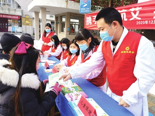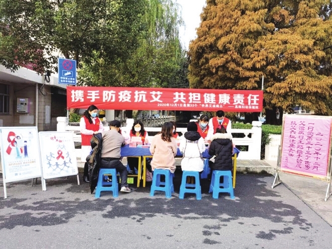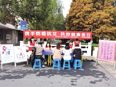 2020年12月1日是第33个世界艾滋病日,今年的宣传主题是“携手防疫抗艾、共担健康责任”。为加强新时代文明实践,认真贯彻落实《国务院关于进一步加强艾滋病防治工作的通知》精神,有效预防及遏制艾滋病的传播,12月3日上午,市妇幼保健院专门组织生殖健康科、妇保科、儿保科、药具办等科室的8名春晖志愿者,在南海社区步康桥开展艾滋病防治知识和国家政策的宣传及义诊活动。