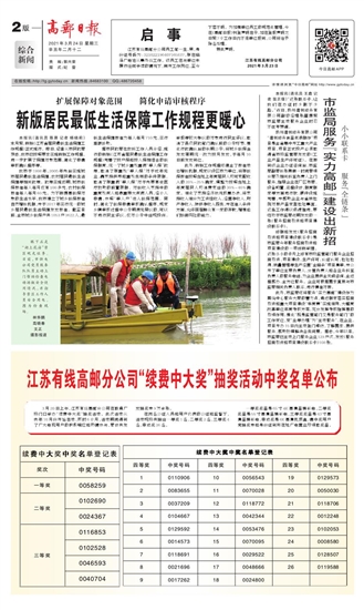 江苏有线高邮分公司“续费中大奖”抽奖活动中奖名单公布