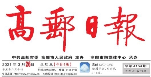 2021年3月26日 辛丑年二月十四 星期五 今日4版 总第4154期 2021年第59期