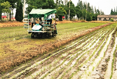 图为卸甲农民正用插秧机插秧。 王林山 摄影报道