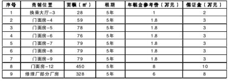 所有商铺租金均五年一次性交清,具体招租细节及要求参见招租单位招租须知。