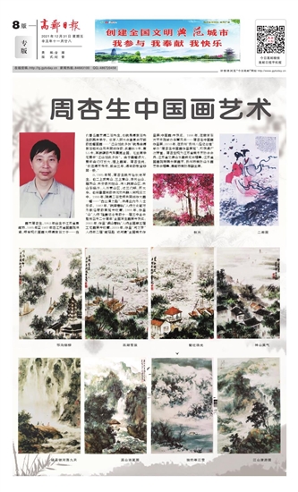 从1985年起,周杏生就开始长途写生。他二上武夷山,三上黄山,游天台山,雁荡山,去安徽天柱山,深入皖南山区;去山东临沂,入沂蒙山区,过三门峡,历太华。他将掌握到的传统功夫融入到现实之中。1990年,随傅二石老师共同创作大画一幅——“古丝绸之路”,深得业内外人士好评。1987年,“皖南春晓”入选文化部对外联络局的展览并收藏;1988年,作品“山”入选“隆重纪念党的十一届三中全会胜利召开二十周年”全国写生画展并获奖;2001年,作品“湖山春晓”入选全国第五届工笔画展并收藏;2019年,作品“河之梦”入选笫二届“邮驿路 运河情”全国美术作品展(中国画)并获奖。1996年,在南京东方艺术院举办华夏风釆——周杏生中国画作品展;2010年,在扬州“扬州八怪纪念馆”举办“周杏生中国画作品展览”,均获得广泛赞誉。周杏生现为江苏省美术家协会会员,江苏省文德山水画研究会理事,江苏省国画院特聘参展画家,扬州市美协山水画艺委会理事,高邮市美协原副主席。