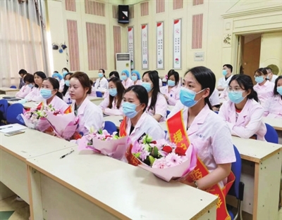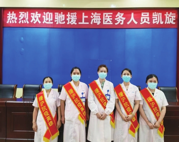 今年的3月31日至5月7日,刘萍、陈素梅、谢景慧、吴周、薛佳伦五位同志,积极响应上级号召,时刻始终牢记习近平总书记“把人民群众生命安全和身体健康放在第一位”的重要指示精神,时时处处闻令而动,在上海市新冠肺炎疫情最严峻的时刻,以身作则,逆行出征,先后辗转上海市宝山区、嘉定区、浦东新区等多处,历时38天英勇奋战,用实际行动践行着伟大抗疫精神,诠释着医者初心使命,圆满完成了上级交办的各项任务。绶带、鲜花和掌声是对英雄的馈赠,更是全院干部职工对5位巾帼英雄的敬佩。