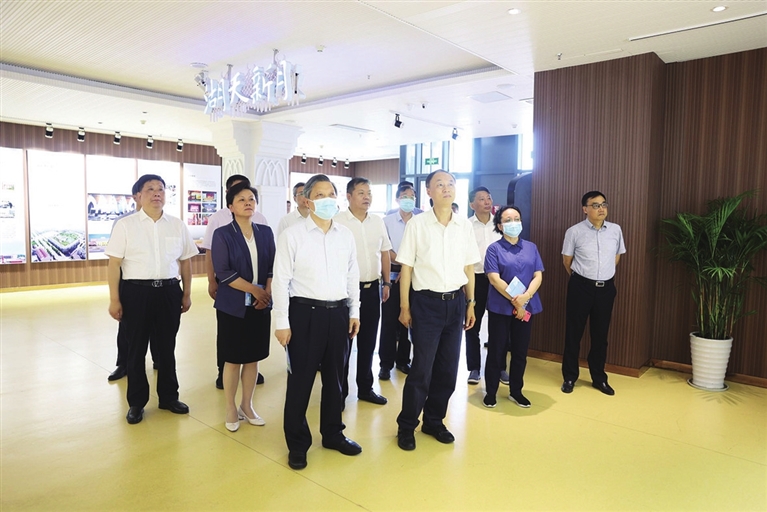 在邮期间,马秋林一行来到菱塘回族乡开展调研。菱塘回族乡是全省唯一少数民族乡,现辖6个村和2个社区,53.9平方公里,2.3万人,其中回民占30%以上。在菱塘回族乡,马秋林一行先后来到民族文化宫(湖天新月展馆)、红石榴家园、回民小区、菱塘回民实验小学、扬州曙光电缆有限公司、王鲜记农场、清真村、古清真寺、环湖大堤北岗段等现场开展调研。他们边走边听、边看边问,不时驻足与相关负责人详细交流,现场了解相关工作情况。在此期间,马秋林还走进回民小区杨福贵家中,与杨福贵及其家人拉家常,亲切询问他们的生活状况、家庭收入等情况。当得知杨福贵是一名电缆企业负责人,在他和家人的勤奋努力下,家庭和谐美满、生活幸福富足时,马秋林连连点头称好。