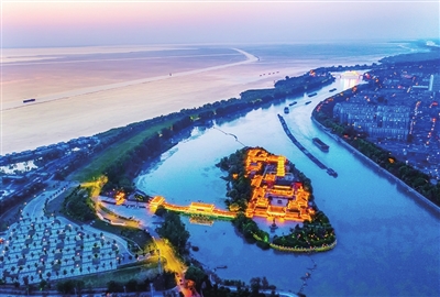 高邮大运河拓宽新挖工程,在上世纪五十年代有两次。第一次,史载是1956年11月13日,京杭大运河高邮段从与江都县搭界,北至与宝应接壤的子婴间,全长为26.5公里。第二年6月13日竣工,原来在西南角的唐代镇国寺塔则成为两河相抱的河心岛的地标。第二次为1957年八九月间,至1958年10月运河西堤西移的整治工程。两次工程动用了高邮甚至是兴化的民工两万人,上堤、开挖、取土、运土、加固,使这条母亲河成了致富河、幸福河。