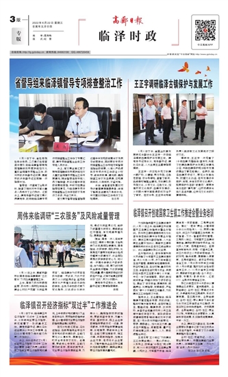调研中,王正宇一行观看了《千年古镇 风雅临泽》宣传片,听取了我镇古镇保护与发展工作情况介绍,并就古镇保护规划和开发建设提出了意见和建议。他表示,临泽古镇历史悠久,要充分发挥优势,挖掘文化内涵,在开发建设中保护、利用、传承好历史文化遗产;既要保护外在的“筋骨肉”,更要传承内在的“精气神”,让历史遗存与当代生活共融,让传统文化与时代精神共鸣。